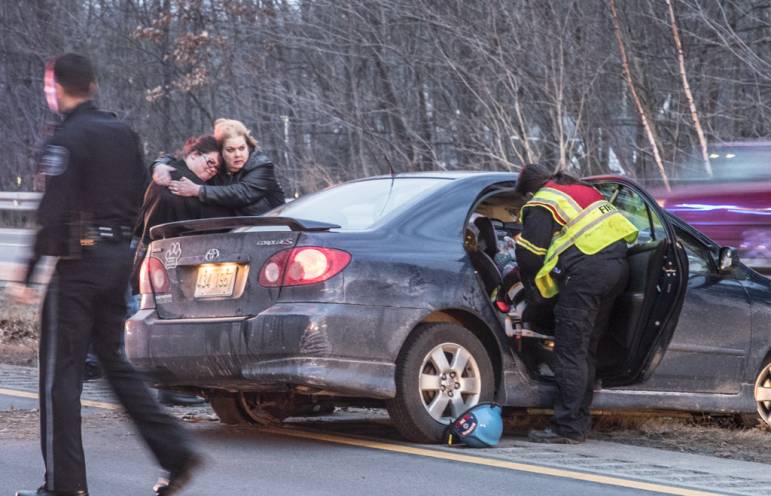NH State Police remained on the scene investigating the accident. A woman and young child from the other vehicle appeared shaken up but not seriously injured.