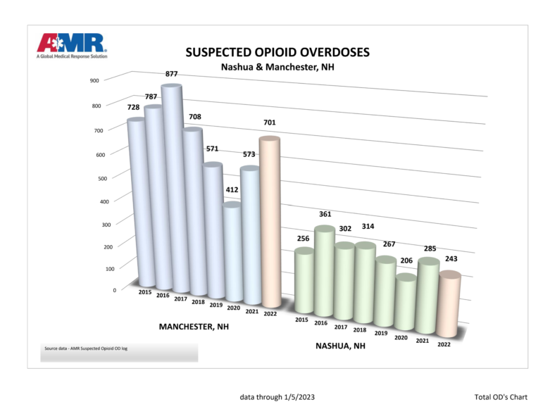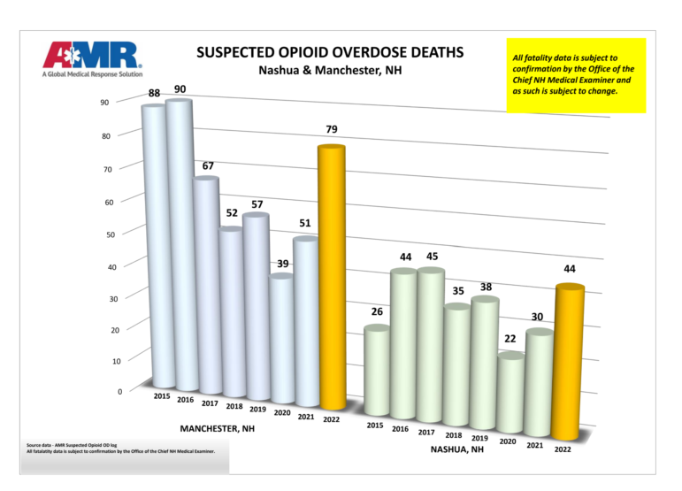 NASHUA, N.H. โ American Medical Response (AMR), the ambulance service for Manchester, says that opioid deaths and overdoses reached pre-pandemic levels in their final 2022 report.