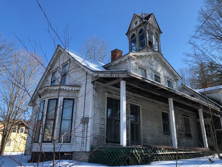 Built in the early1880s by Harlan Ware, this whimsical cape features scalloped trim, a distinctive cupola, and details inspired by Andrew Jackson Downing’s “suburban cottage” designs. Long cared for by the Ware and Pitcher families, it later fell into disrepair and was taken by the Town for back taxes. Restoration would save its rich architectural character and contribute positive investment to Alstead’s historic Mechanic Street neighborhood.