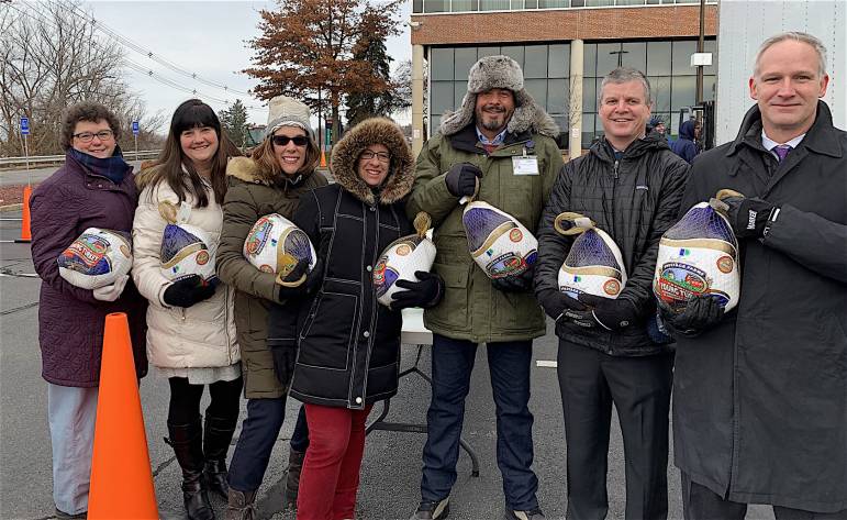 MANCHESTER, NH – Thanksgiving came a little early during the Elliot Health System Annual Turkey Give-a-Way, held Nov. 15 on the Elliot Hospital campus. From 6 a.m. to 6 p.m. staff, providers, and volunteers lined up to receive a turkey as a gift of thanks for all that they give to the community. It also was an opportunity for everyone to take part in a food drive, clothing drive and a final gesture of giving – donating turkeys locally for the Thanksgiving holiday.