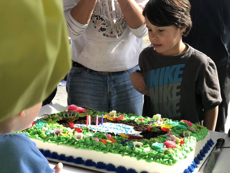 Once the garbage was collected, it was time for cake and presents at the gazebo. It was catered by Titus’ parents who own Big Kahunas Cafe & Grill in Merrimack.