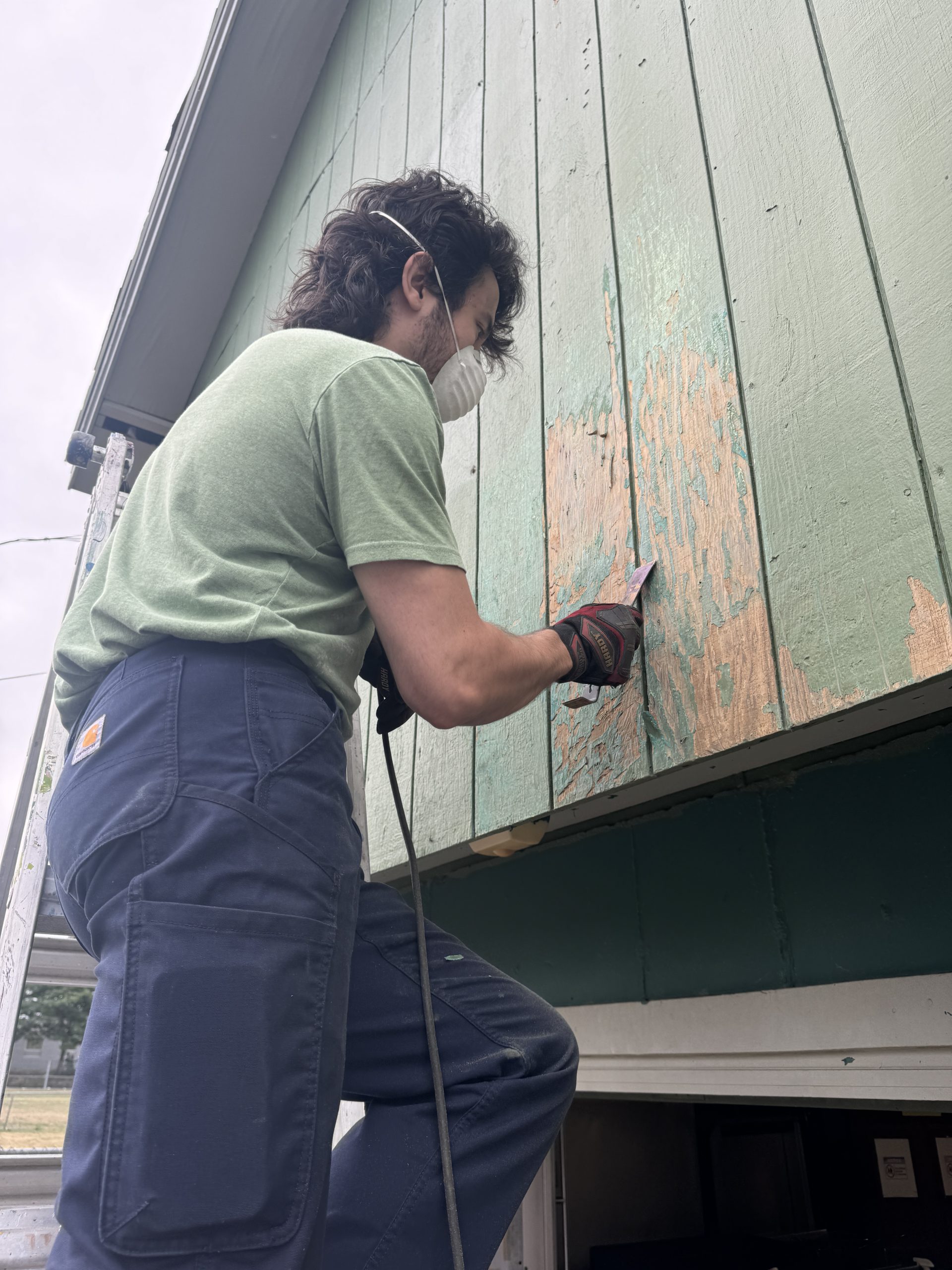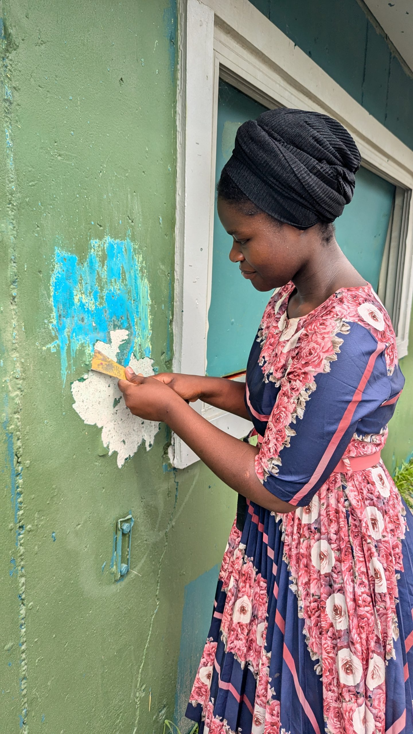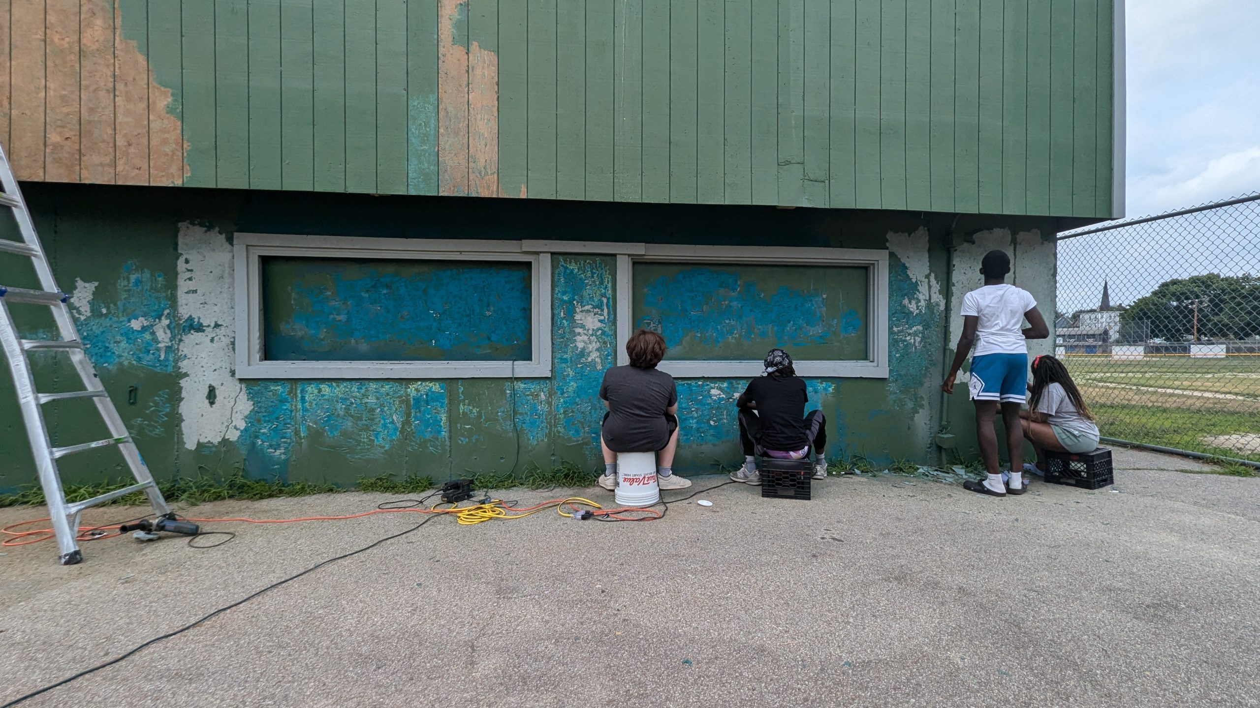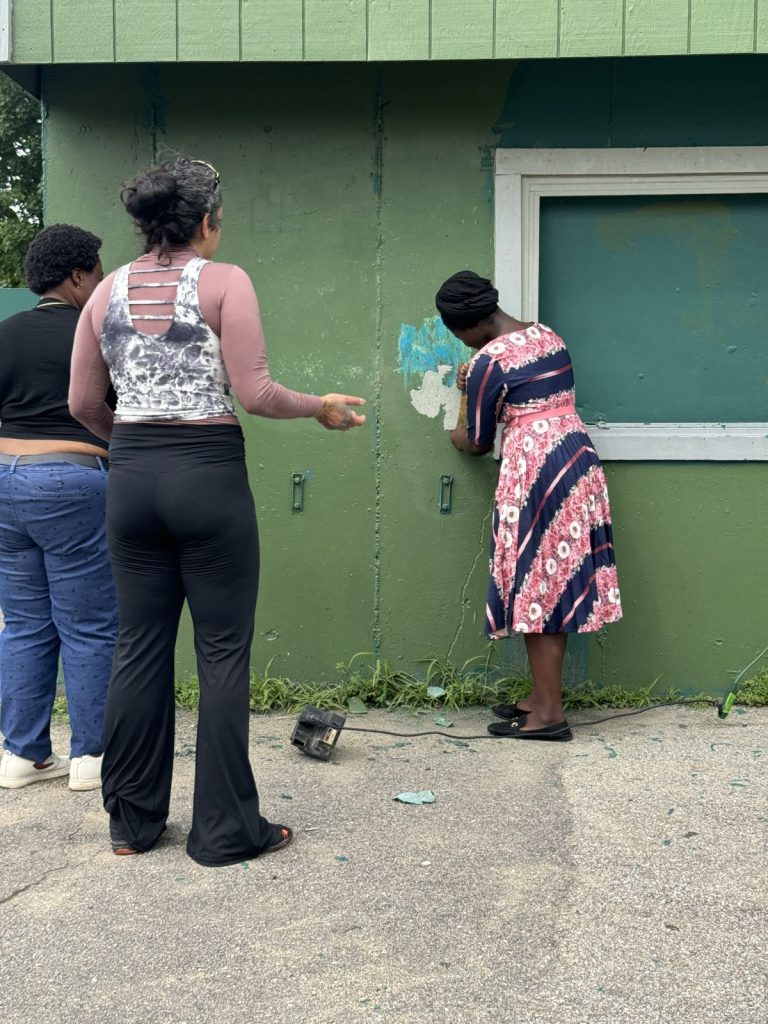 During this year’s internship, our main work that we have been doing is  cleaning  the green house which Manchester Parks and Recreation and Manchester Central Little League allowed us to occupy and beautify. It was very  dirty and unorganized so we have been  cleaning and organizing things and also throwing things away. We have been drawing and tracing pictures that we want to put on our mural. Peeling off old paint from the walls to prepare for our mural has been challenging and difficult to remove. It hasn’t been an easy process because we lack the necessary equipment and tools to get the  job done. We are aware that starting our mural on top of peeling paint could potentially damage it, which is why we are peeling off all the old layers. Our goal is to ensure that our mural remains  without peeling off.