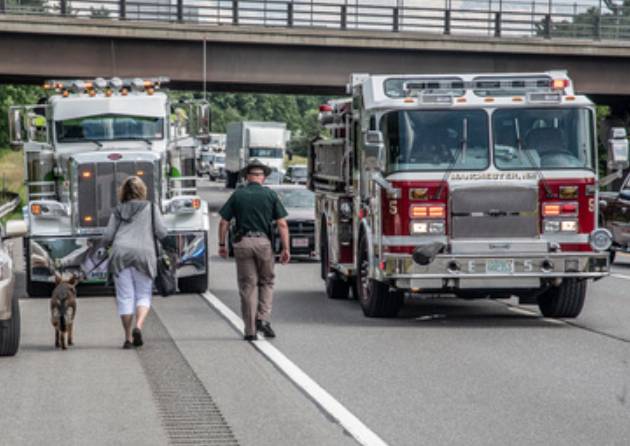 State Police handled the accident, traffic control, and also transported the female her dog safely off the highway to an awaiting relative.