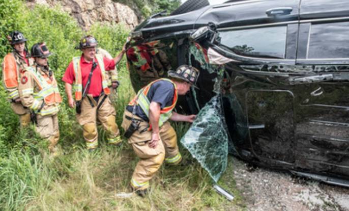 Firefighters had to extricate two people and a dog from the overturned SUV. Photo/Jeffrey Hastings