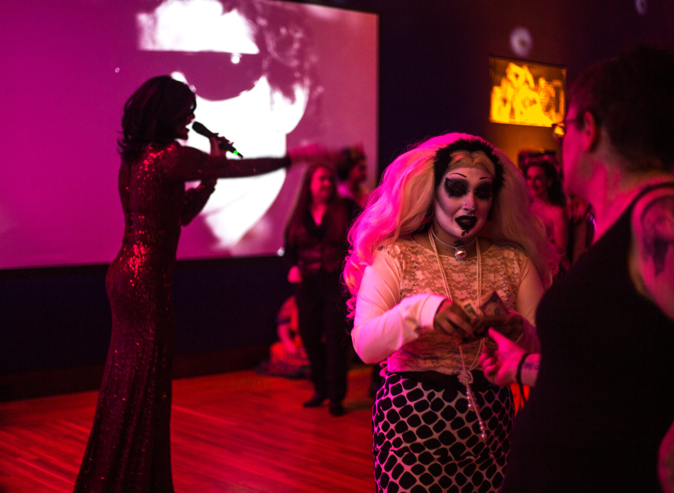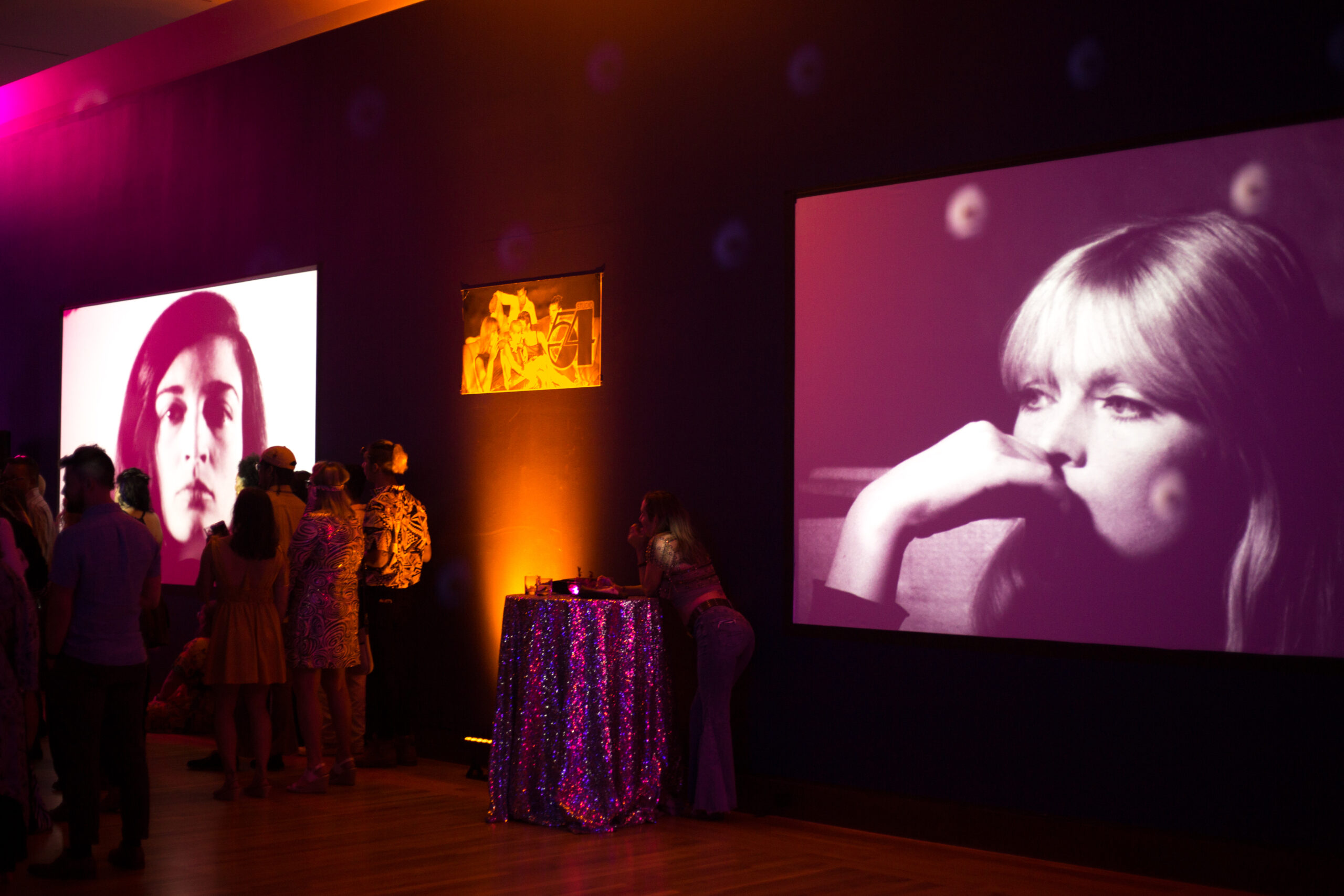 These screen tests are a collection from over 400 created by the celebrated artist. Voyeuristic in nature, the Currier exhibited 20 of these silent black-and-white film portraits provided by the Andy Warhol Museum. Standing amongst the ‘70s-themed decor, chic lighting design, costumed guests, I was instantly hypnotized, enamored by the quality of the event and the vibe the Currier was able to create for its special Queen City Pride guests. Amongst the faces featured in these vintage screen tests were Lou Reed, Salvador Dali, and Edie Sedgwick.