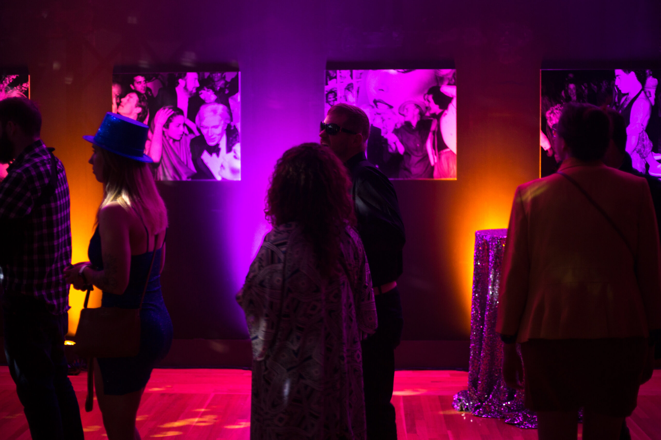 Approaching the entrance to the Andy Warhol exhibit I was impressed by the red carpet, brightly lit Studio 54 sign, and movie star lights beckoning me to enter, immediately curious about what I would find inside. The sounds of classic disco had my feet sliding right onto that carpet and through to the dance floor. I arrived on the scene with a digital camera and no flash, as an artistic choice, to capture the authenticity of the experience – as if captured on film as it would have been in the era of Studio 54’s infamy.