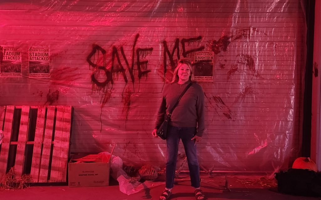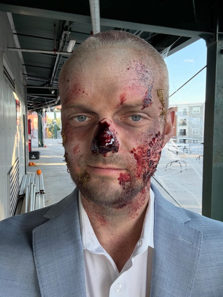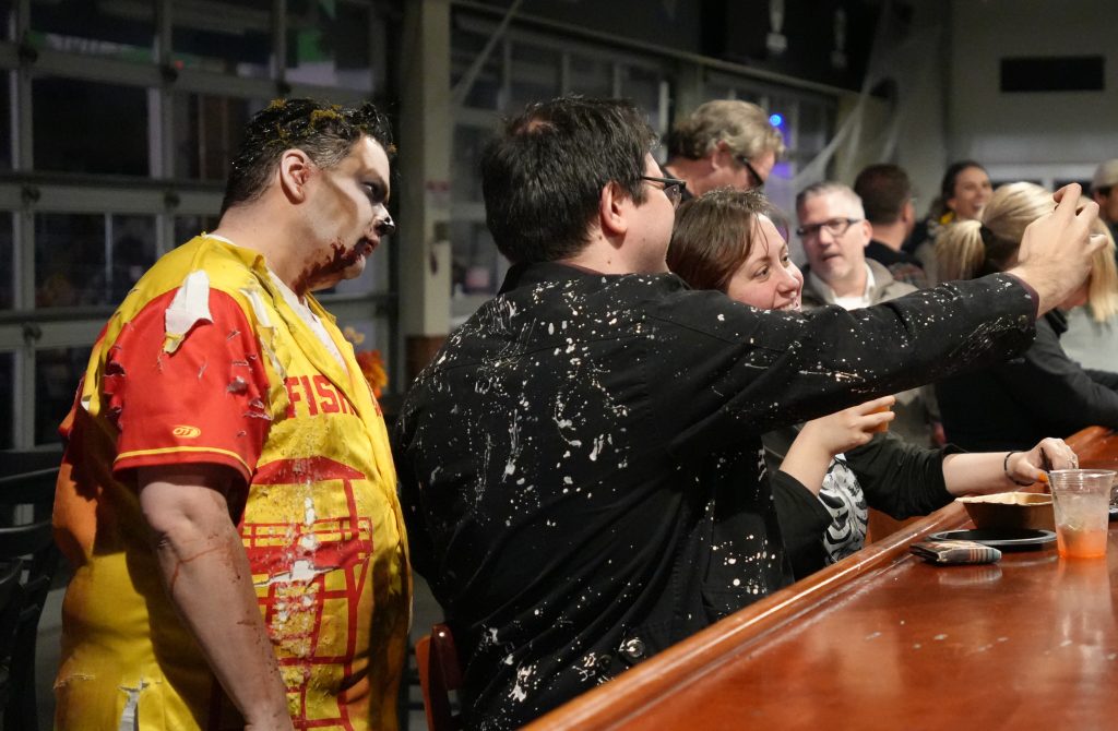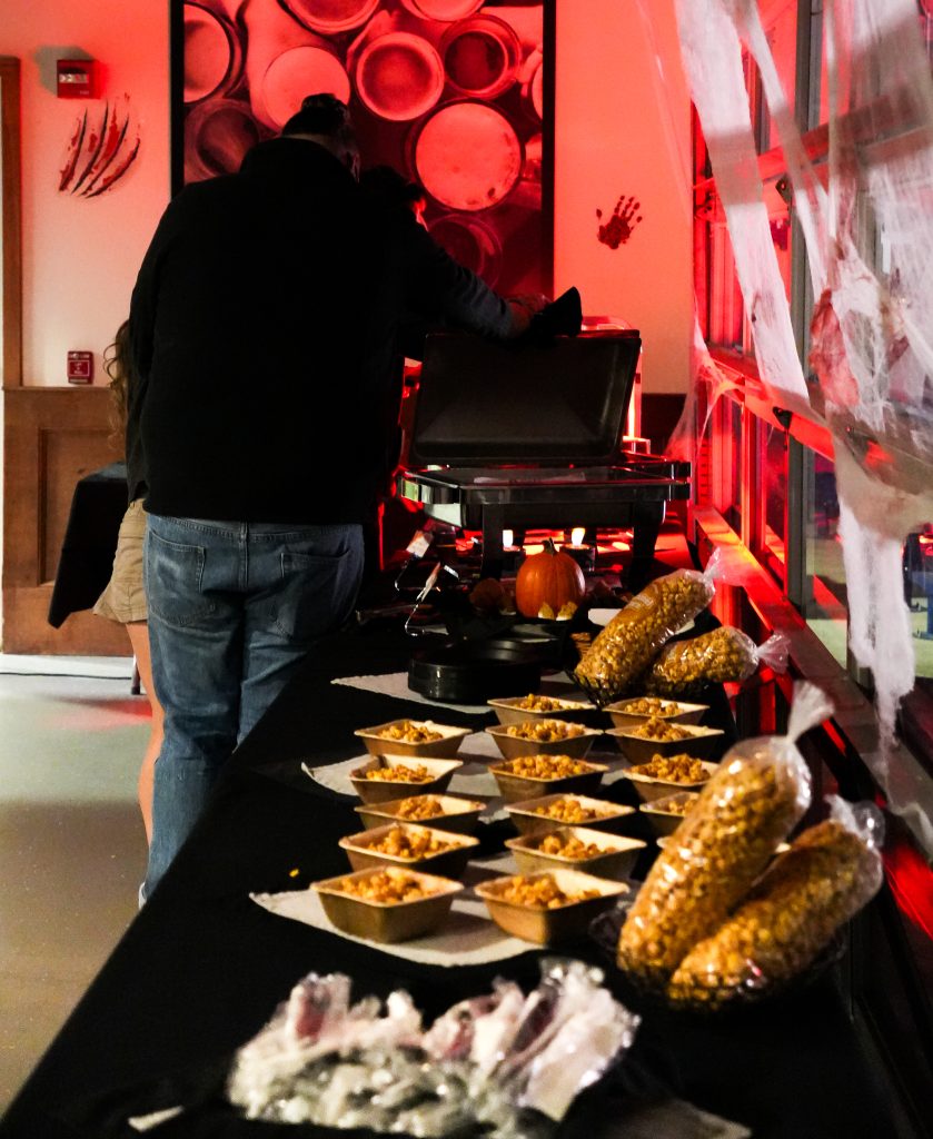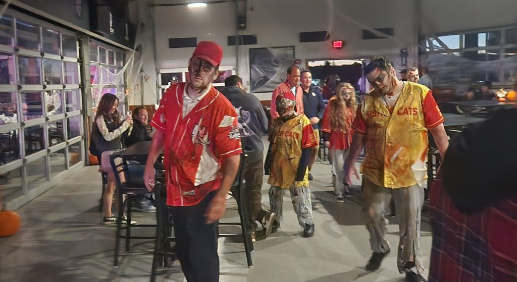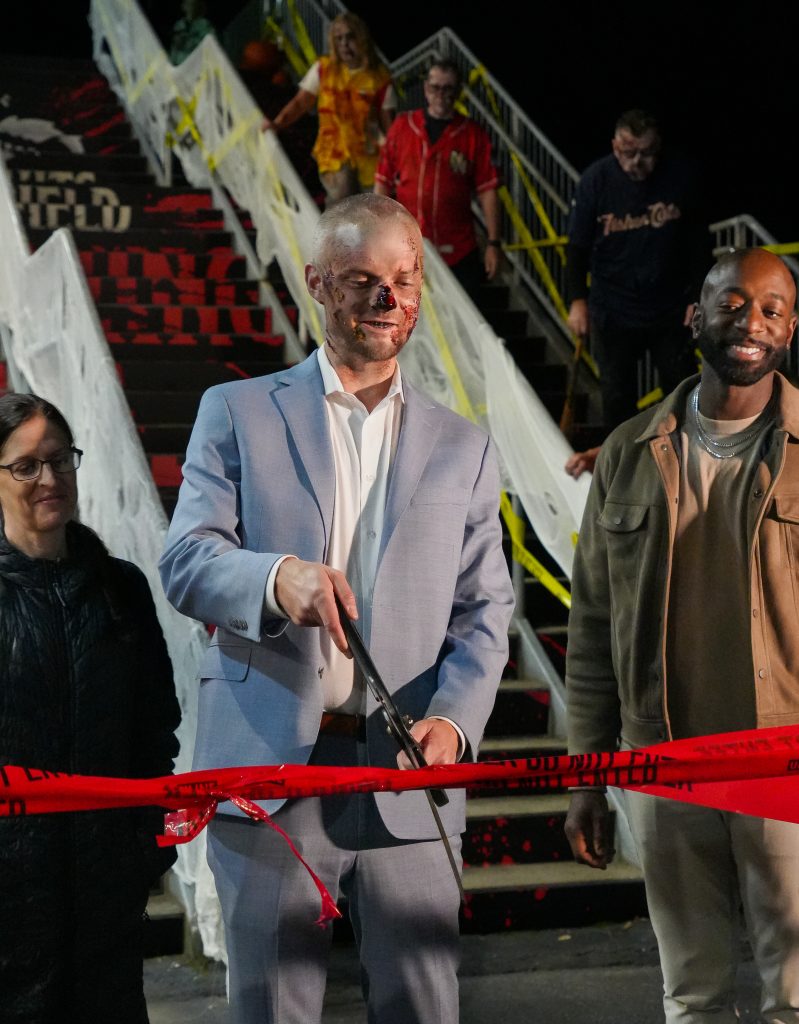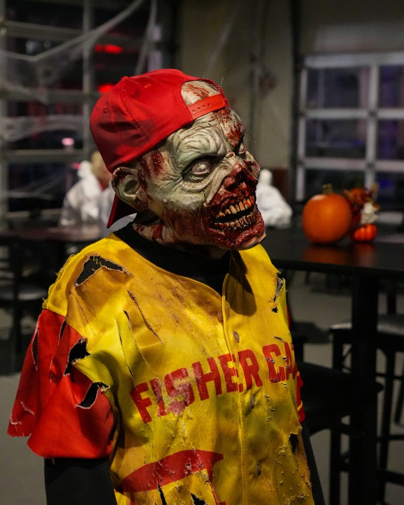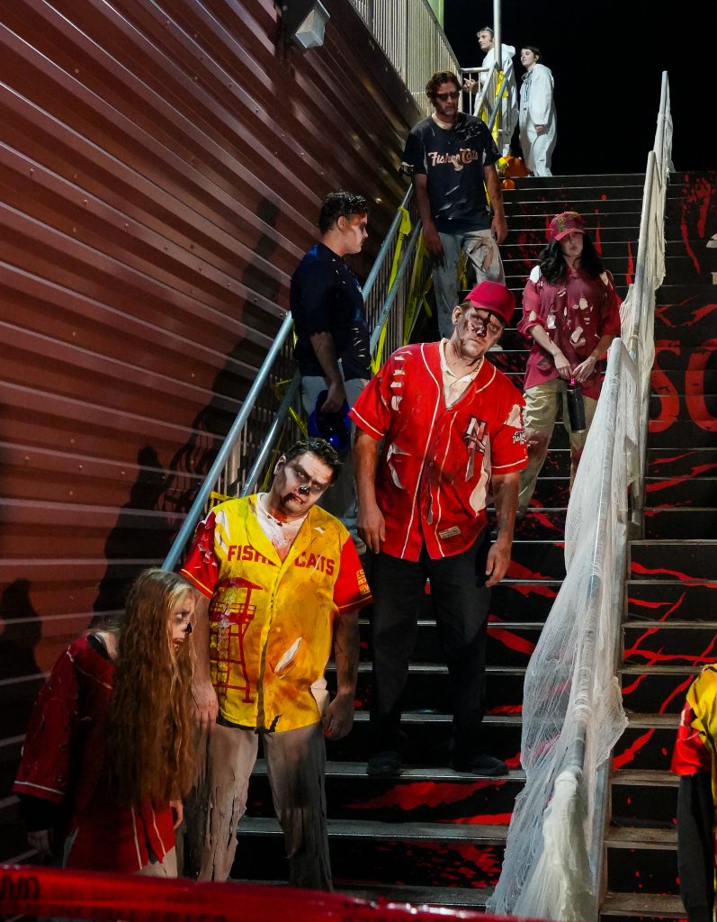 After a ribbon-cutting ceremony, the zombie version of Taylor Fisher led the group through a tour of the spooked-up stadium, giving us glimpses into the escape rooms—no photos were allowed—in the executive suites before leading us back onto the concourses for the haunted trail.