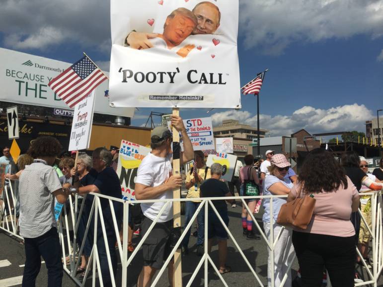 The women, both residents of Manchester, who met for the first time at the rally, started talking and came to the conclusion that what this country needs is for Republicans and Democrats to talk to each other.