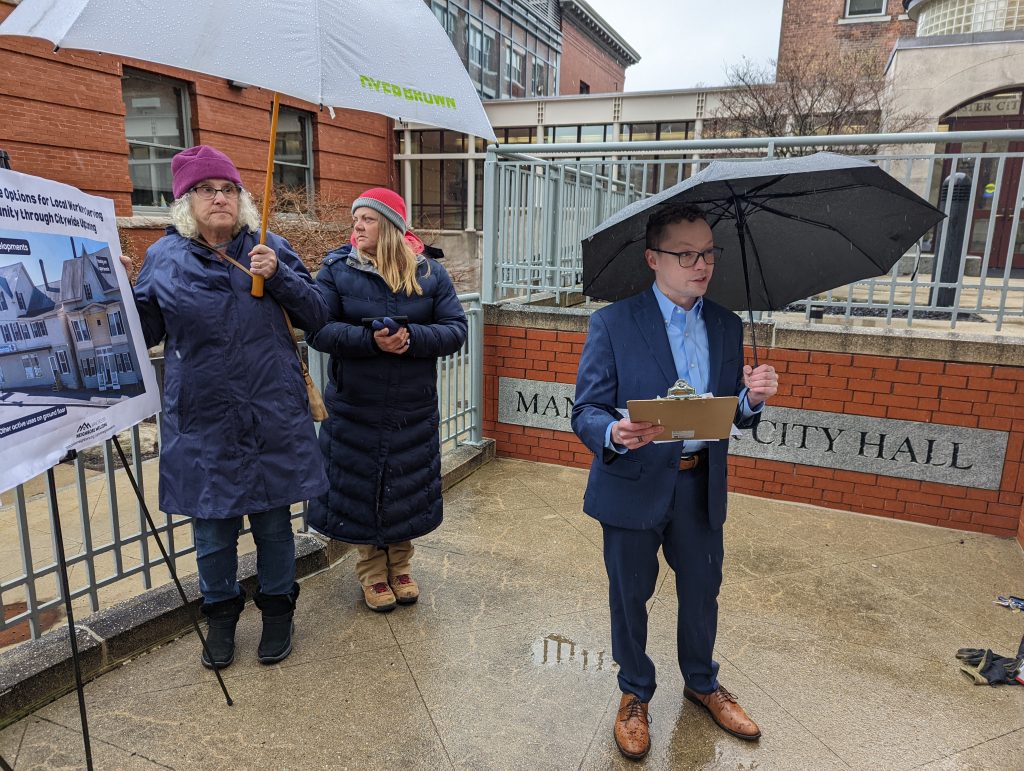 MANCHESTER, N.H. โ Affordable housing advocates gathered outside of Manchester City Hall on Tuesday morning to emphasize the inclusion of housing-friendly additions to the upcoming proposed new city zoning ordinance code.