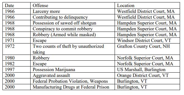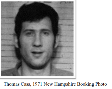 In 1966, he moved back to Vermont and married his first wife. They soon moved to Springfield, MA, where he lived until 1967, when he was arrested for robbery. Mr. Cass acknowledged his long criminal history and confirmed that he had spent a good portion of his life in prison for his various crimes. Mr. Cass told investigators that in 1967 he committed a robbery at a gas station in Springfield, MA. During the commission of this robbery, he used a sawed-off shotgun.