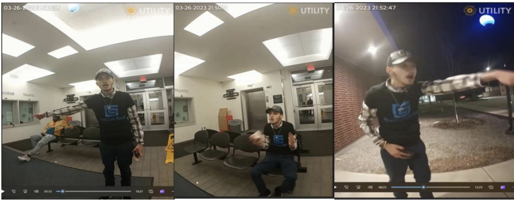 Mr. Al Thuwayni angrily complaining about the traffic citation he received just before he led the Manchester Police on a series of high-speed chases through the city and then pointed his replica Sig Sauer P226 pellet pistol at Sgt. Feather. Mr. Al Thuwanyi can be seen holding the pink traffic citation in his hand during this interaction.