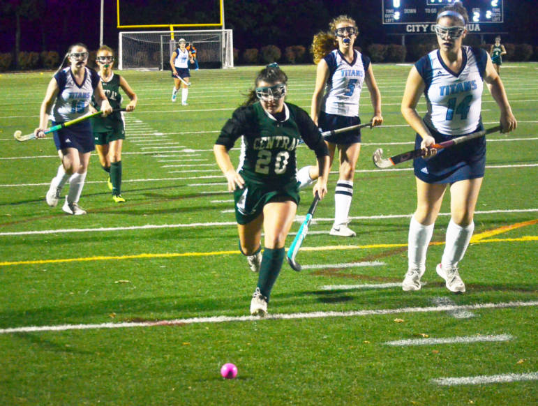 Manchester Central Head Coach Bill Larkins praised Ahernโs ability to fill in for injured playmaker Emma Dudley, believing that itโs been the first hat trick for Central field hockey in several years.