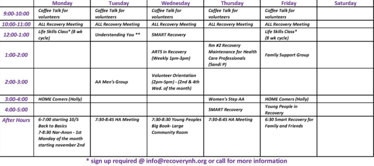 For more information contact Hope for NH Recovery, (603) 935-7524,