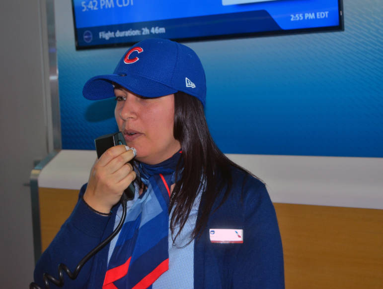 Passengers, American Airlines officials and local dignitaries gathered at the flight’s boarding gate for a series of proclamations followed by cake and Chicago deep dish pizza.