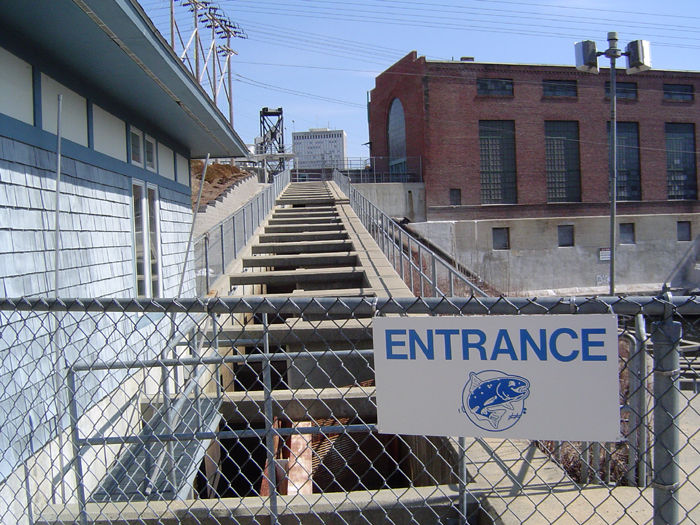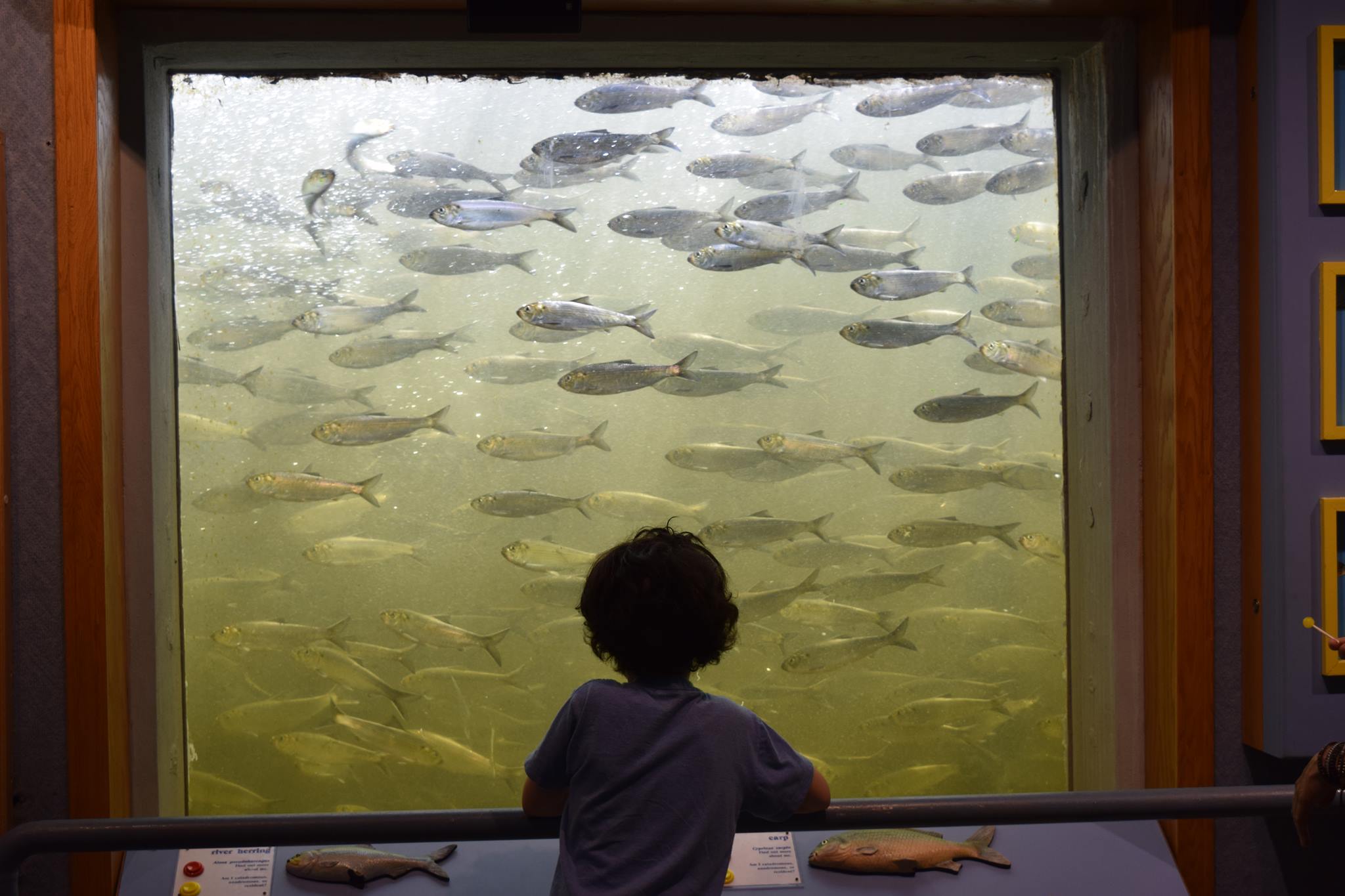 The underwater viewing windows allow visitors a peer into a 54-pool fish ladder of migrating fish who make their way around the Amoskeag Dam and continue on their way up the river to reproduce.