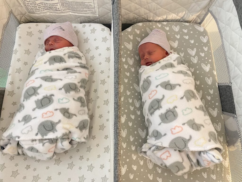 Molly and Charlotte made an exciting entrance into the world: labor and delivery lasted a mere one hour from time of onset to time of arrival. Despite Charlotte turning breech after Molly’s exit, the expertise of Dr. Clemans made for her safe and smooth entrance into the world with no complications. The girls’ arrival time were six minutes apart.