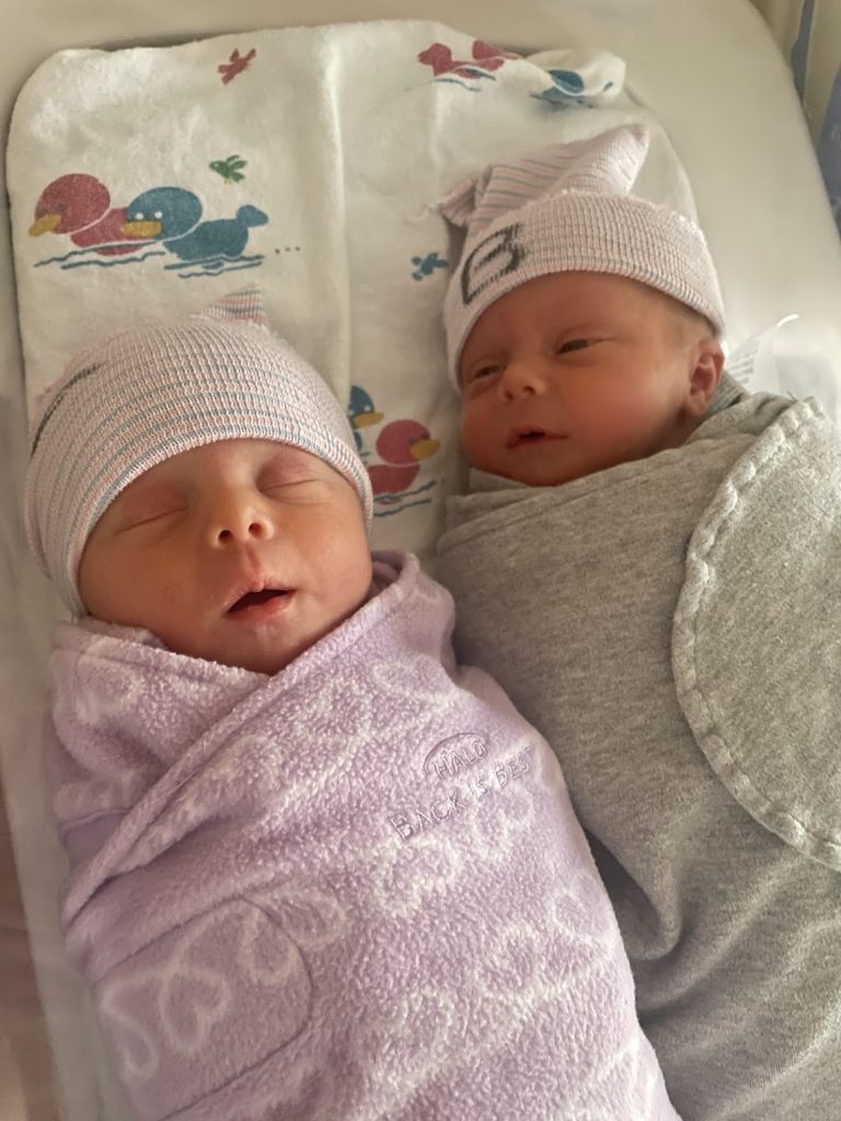 Molly and Charlotte were born at Catholic Medical Center on 12-12-24, delivered by Dr. Cecilia Clemans. They join half-siblings: big brothers Jared and Kyle.