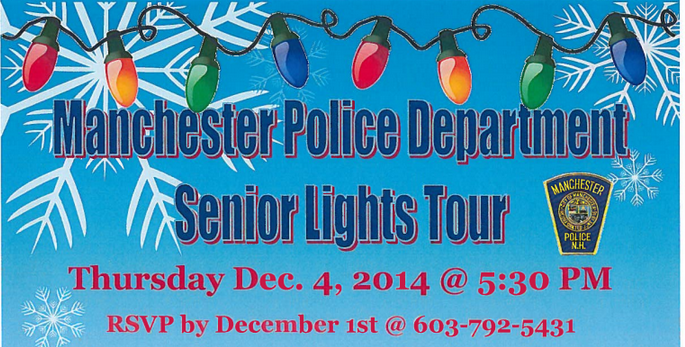 MANCHESTER, NH โ Registration is open for Manchester Police Department’s annual Senior Lights Tour, taking place Thursday Dec. 4 at 5:30 p.m.
