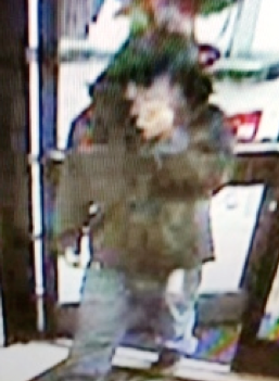 A clerk described the robber as a white male carrying a handgun,ย wearing a gray-hooded winter coat with a black horizontal stripe on the back, light-colored jeans and dark shoes.