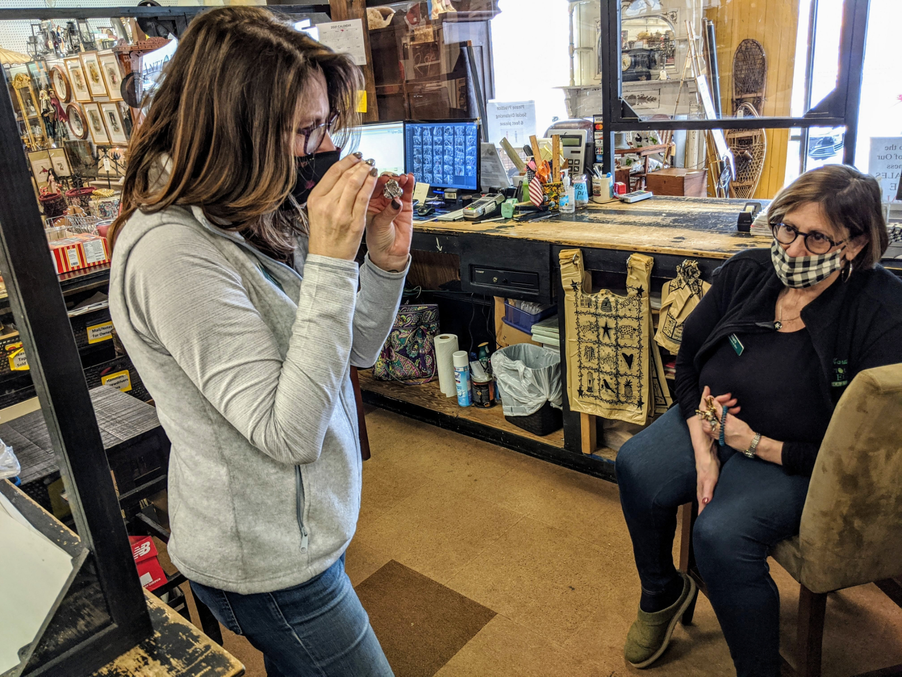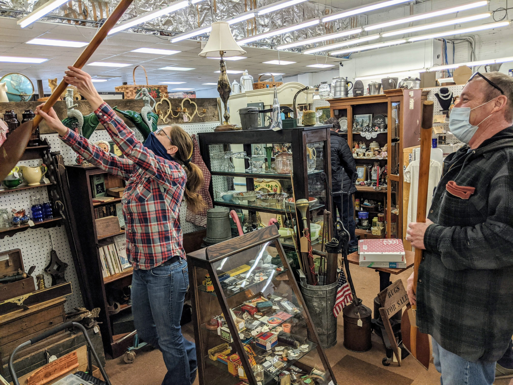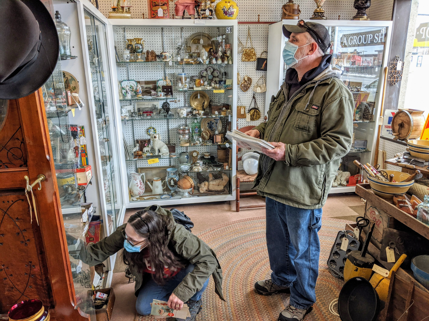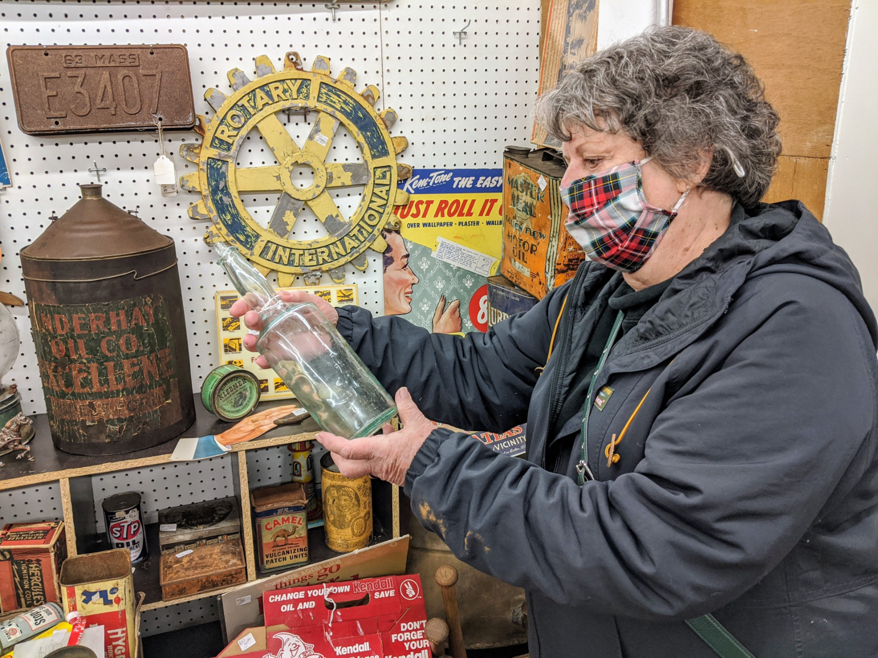 “I got up this morning and it was so nice out, I wanted to do something adventurous, so I called my sister and we thought this might be a good idea,” she says. Monaghan used to go antiquing with her husband, who’s been gone six years now. She owns a 19th-century home in Manchester and loves to find collectibles that fit the era, mainly furniture, bottles and ink wells.