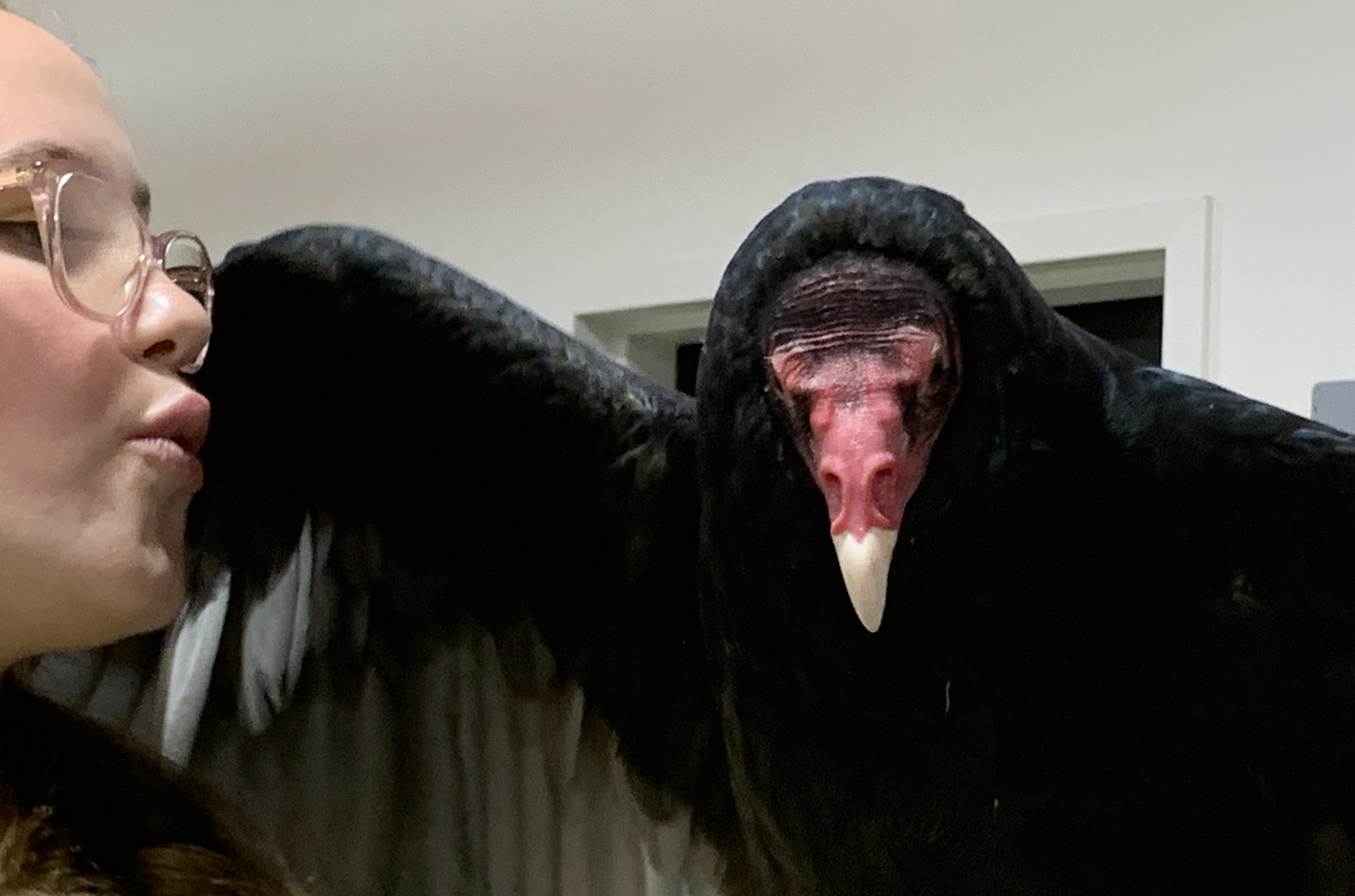 The bird that then appeared was the very impressive Greta the turkey vulture, with a wingspan of probably six to seven feet.