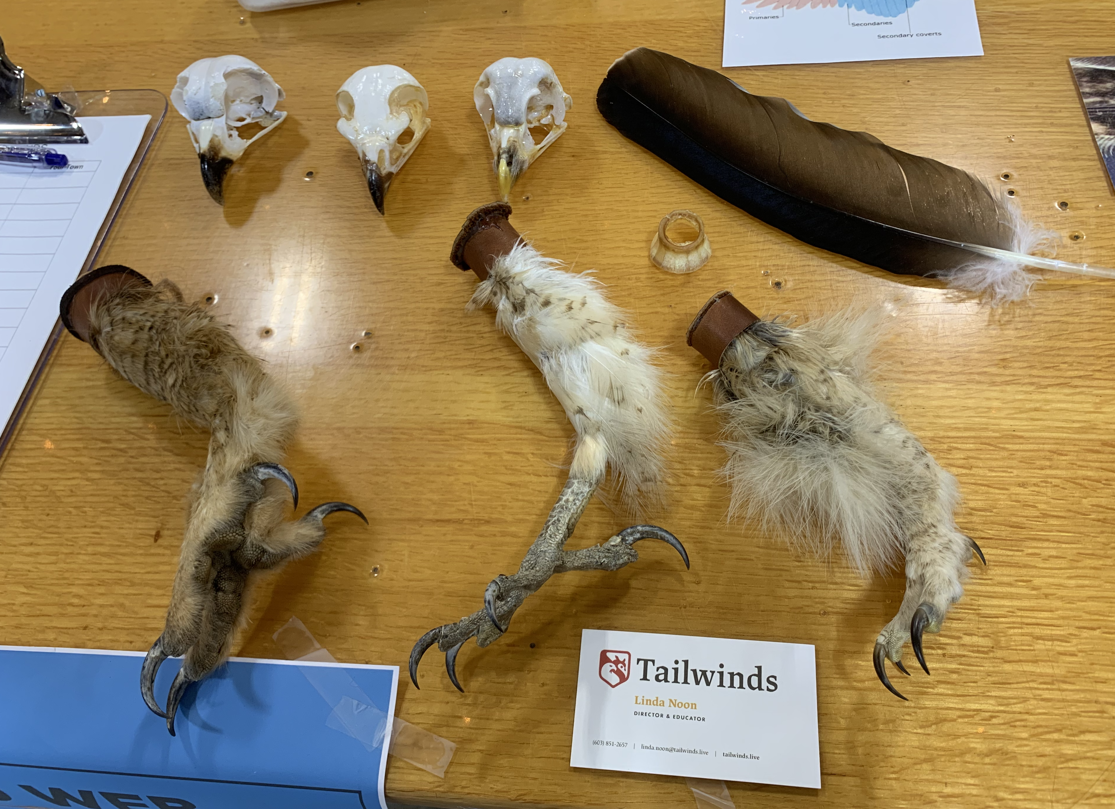 They did a great job of arranging display materials for “show & tell,” also of answering questions and, most importantly, handling the birds.