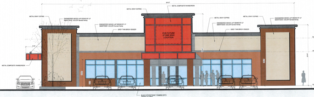 Applicant seeks a variance from Zoning Ordinance Sections (1) 5.3.1.O.3.C Maximum Front Yard Setback, (2) 5.3.1.O.3.H Maximum Lot Coverage, (3) 5.3.1.O.3.I Surface Parking Location, (4) 5.3.1.O.6.D Required Number of Street Entrances, (5) 8.3.1 Screening of Dumpsters, (6) 5.4.6.E.5.c Tower Width, (7) 5.3.1.O.6.A Primary Faรงade Minimum First Story Transparency, (8) 5.3.1.O.6.B Primary Faรงade Blank Wall Limitations, (9) 5.3.1.O.6.A Secondary Faรงade Minimum First Story Transparency, (10) 5.3.1.O.6.B Secondary Faรงade Blank Wall Limitations, (11) 9.8.3.A.1 Roof Sign Location, and (12) 9.6-A Allowable Building Signs (4 counts).
