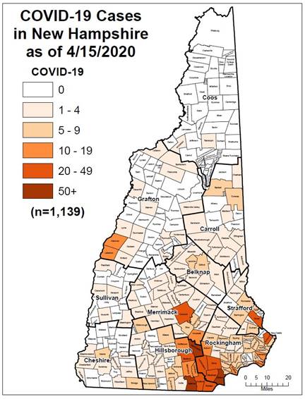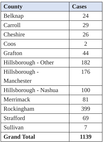 CONCORD, NH โOn Wednesday, April 15, 2020, DHHS announced 53 new positive test results for COVID-19. There have now been 1,139 cases of COVID-19 diagnosed in New Hampshire.