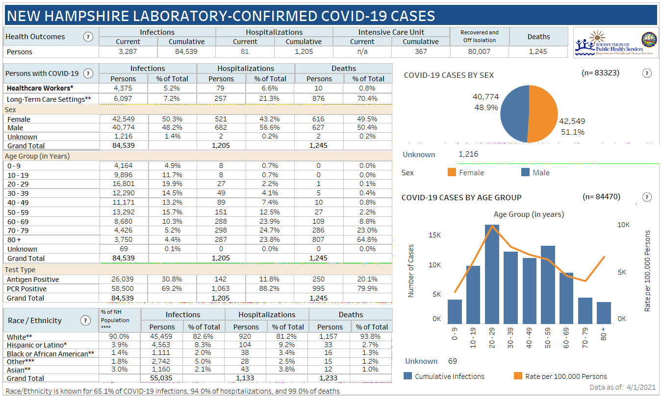 ย New Hampshire 2019 Novel Coronavirus (COVID-19) Summary Report (updated April 2, 2021, 9 a.m.)
