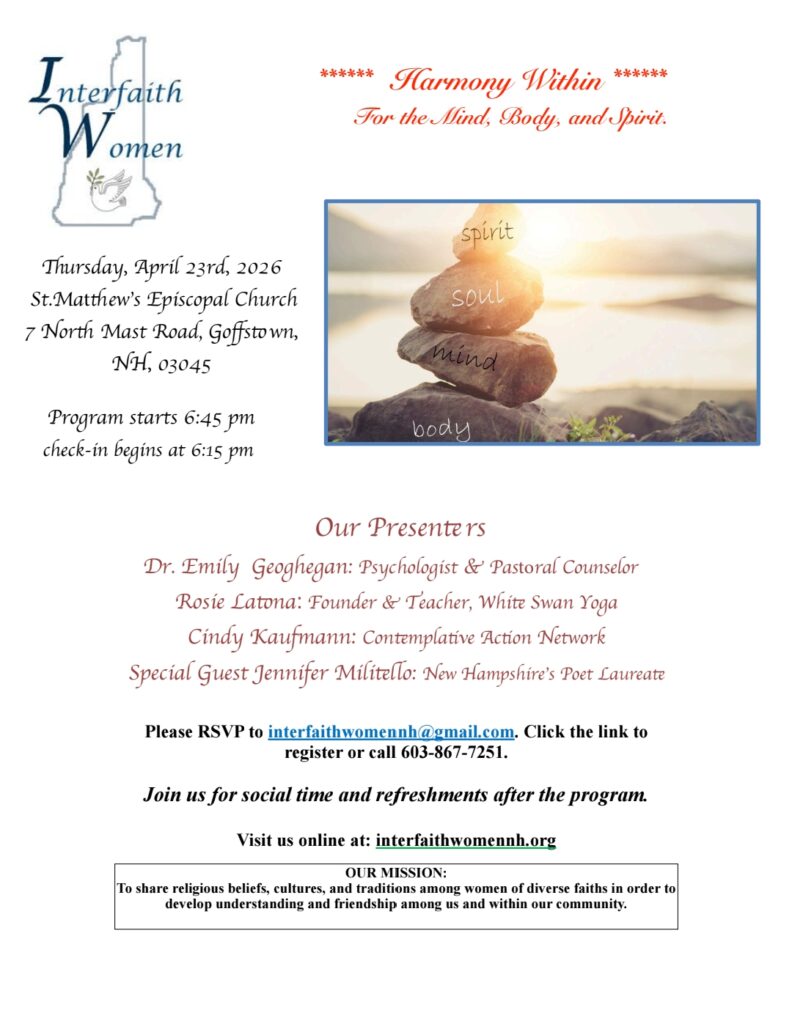 TO REGISTER: RSVP to interfaithwomennh@gmail.com and click the link