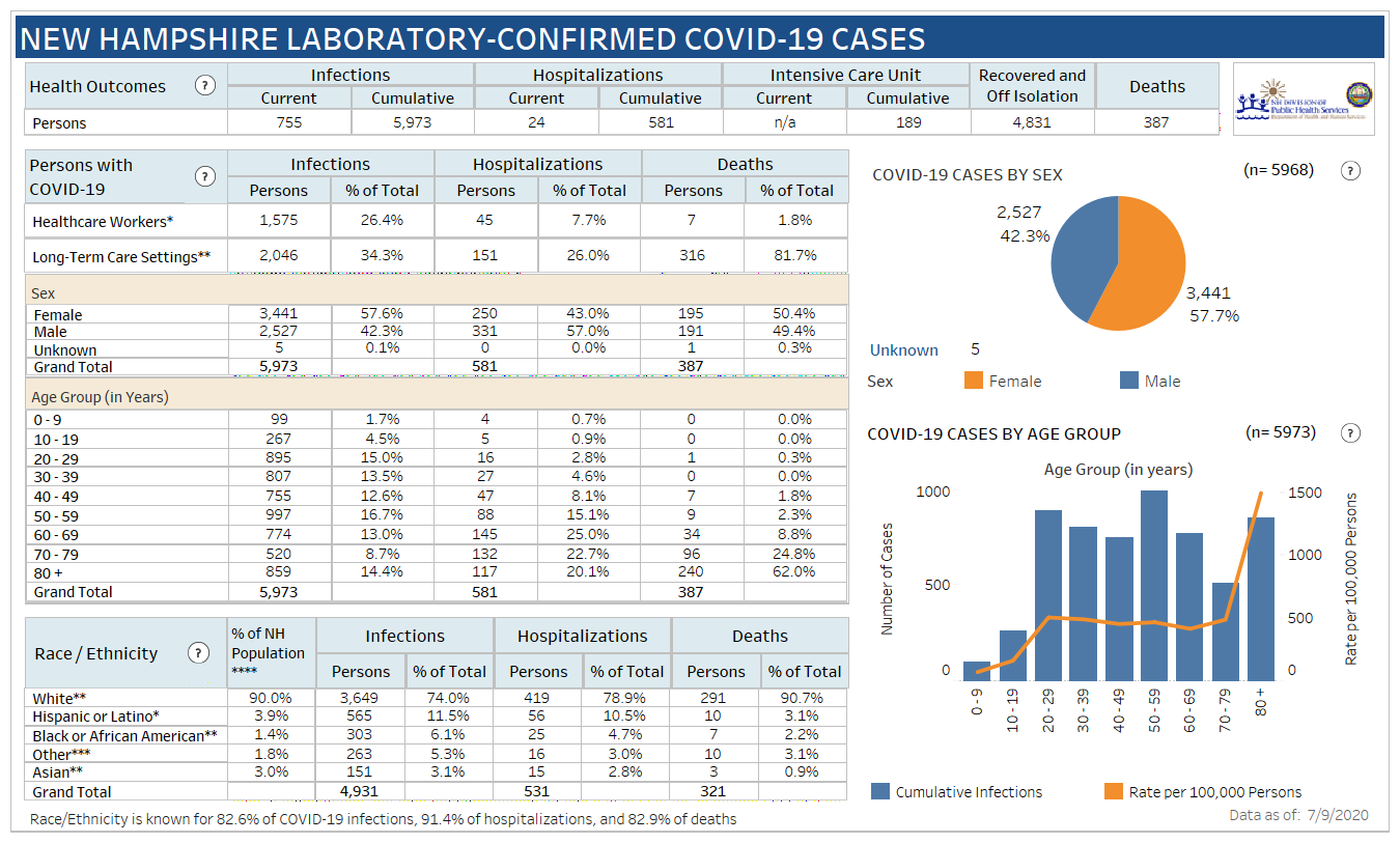 The most up-to-date laboratory testing data, positivity rates and vaccination data are available on the COVID-19 dashboards at https://www.covid19.nh.gov/dashboard/overview. For additional hospitalization data, please visit the New Hampshire Hospital Association’s COVID-19 information page at https://nhha.org/index.php/whats-new/1545-coronavirus-disease-2019-covid-19-outbreak.