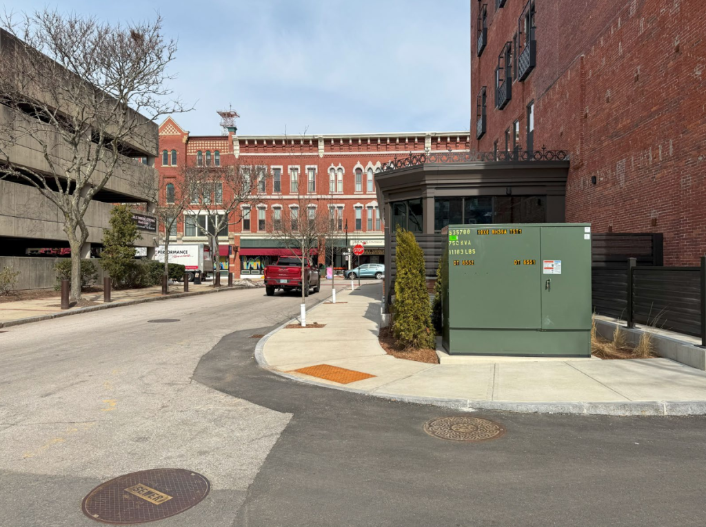 Applicant has submitted a site plan application for the addition of an external dumpster enclosure, including a grease trap, for commercial restaurant use at 73 Hanover Street, to be located along the landscaped strip at the corner of Nutfield Lane and Londonderry Lane.
