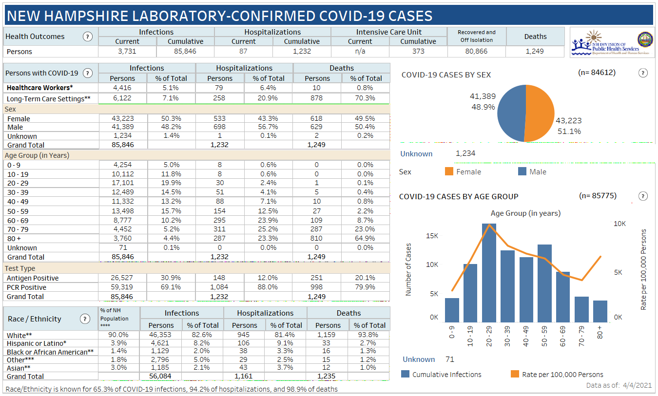 New Hampshire 2019 Novel Coronavirus (COVID-19) Summary Report (updated April 4, 2021, 9 a.m.)