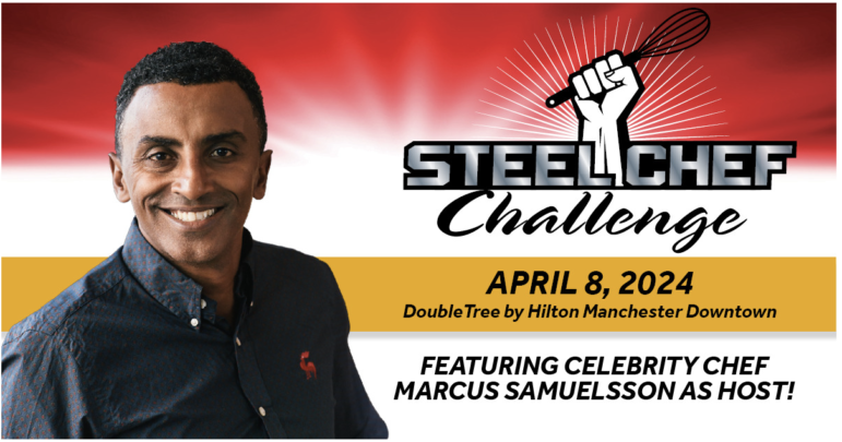 MANCHESTER, NH – The New Hampshire Food Bank’s 8th Annual Steel Chef Challenge, presented by Service Credit Union, will feature celebrity chef Marcus Samuelsson hosting an exciting cooking competition featuring four of NH’s best professional chefs! Join us on April 8, 2024 for an exciting evening in support of the NH Food Bank and its programming.