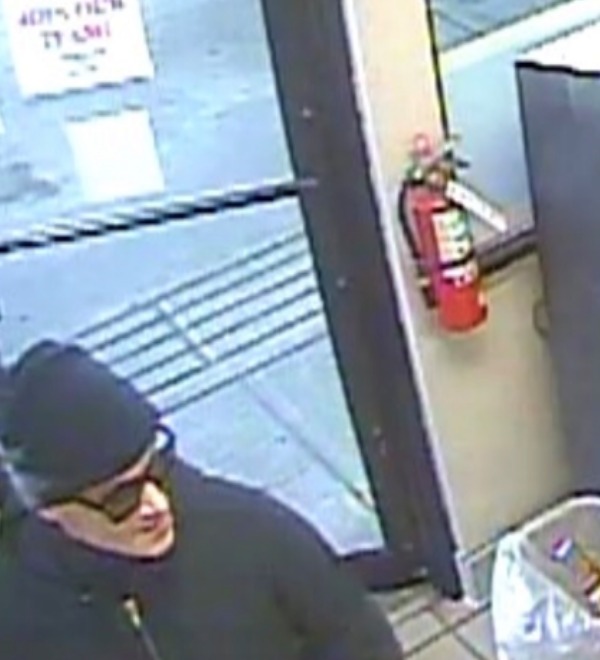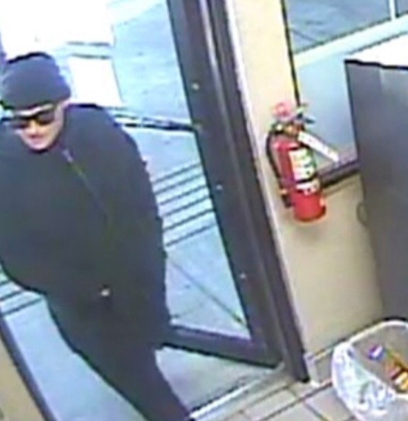 The robber was described as a white male, estimated to be in his late 20s to late 30s, 5-foot-5 or 5-foot-6 inches wearing a black beanie hat, black jacket, dark jeans, dark-colored sunglasses, wearing either blue or black gloves.