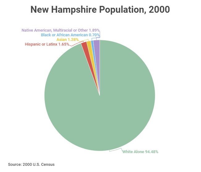 At the time, racial and ethnic minorities made up just 2.7 percent of the state’s population, historical census data show, making the Granite State one of the whitest in the nation. Even as the country has rapidly become more diverse, it’s a title New Hampshire still holds, ranking 47th in the nation and following behind only West Virginia, Vermont and Maine.