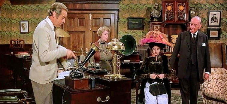 Eliza’s second and final public presentation takes place at an embassy ball where she marvelously triumphs, further reinforcing Higgins bloated and arrogant ego. In conversing with Pickering, while Eliza is present, her success is lost as she is blatantly spoken of primarily as a pawn, an accomplishment wholly of Higginsโ effort, to which she becomes infuriated, in part for her unrecognized contribution towards her own accomplishments and for her growing affection of the professor. She immediately leaves, eventually fleeing to the home of Mrs. Higgins (Gladys Cooper) Professor Higgins mother, where Eliza reports, as a result of Mrs. Higginsโ coaching, and in Higginsโ presence, his ghastly behavior, arriving at the conclusion she no longer needs him. As nature would have it, this triggers Higginsโ cool emotion, realizing in turn he too just may be reluctantly in love.