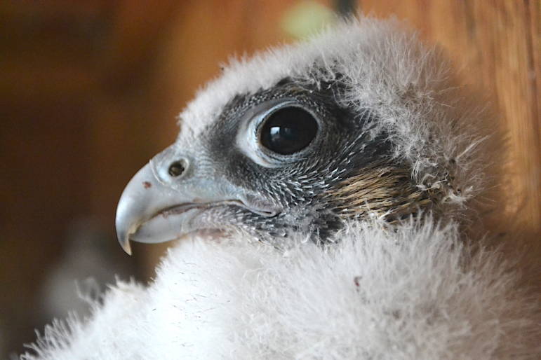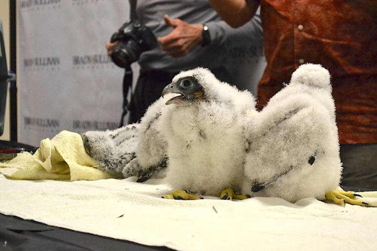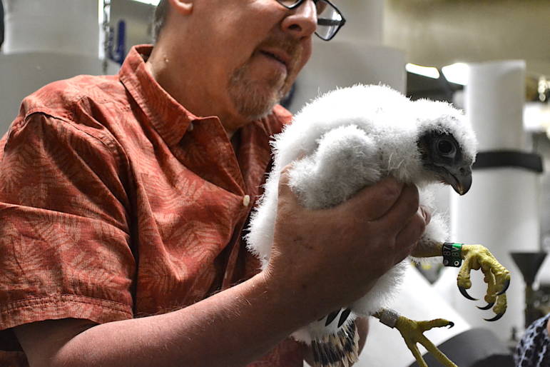 The numbers can be used to identify the birds, allowing researchers to track their origins and age. Peregrine falcons are a federally-protected species.