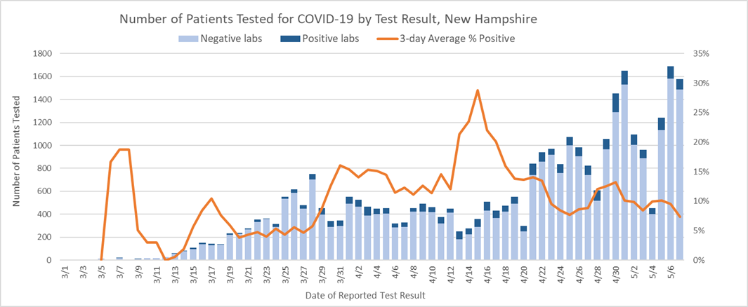 2ย Includes specimens tested at the NH Public Health Laboratories (PHL), LabCorp, Quest, Dartmouth-Hitchcock Medical Center, and those sent to CDC prior to NH PHL testing capacity.