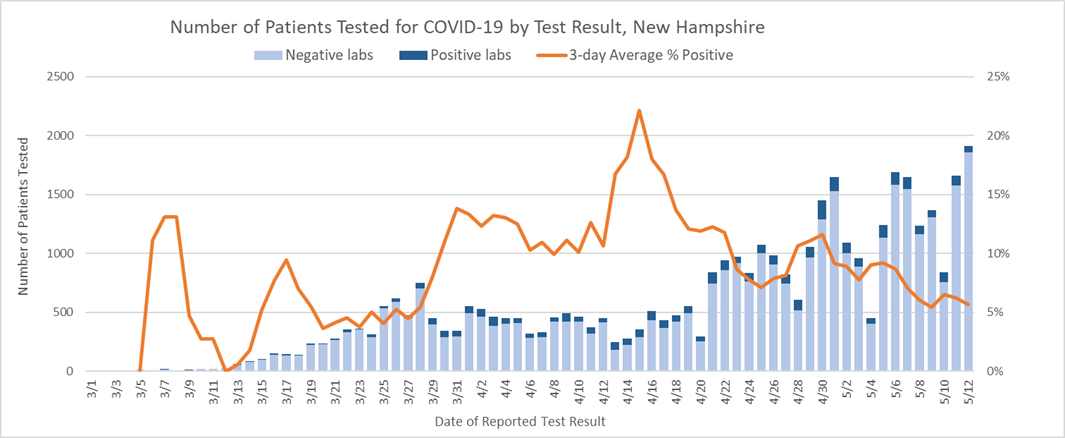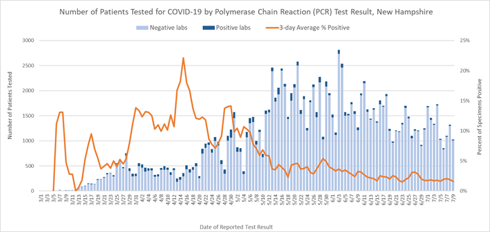 2 Includes specimens tested at the NH Public Health Laboratories (PHL), LabCorp, Quest, Dartmouth-Hitchcock Medical Center, and those sent to CDC prior to NH PHL testing capacity.