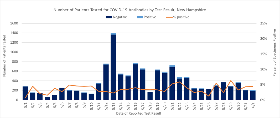 2 Includes specimens tested at the NH Public Health Laboratories (PHL), LabCorp, Quest, Dartmouth-Hitchcock Medical Center, and those sent to CDC prior to NH PHL testing capacity.