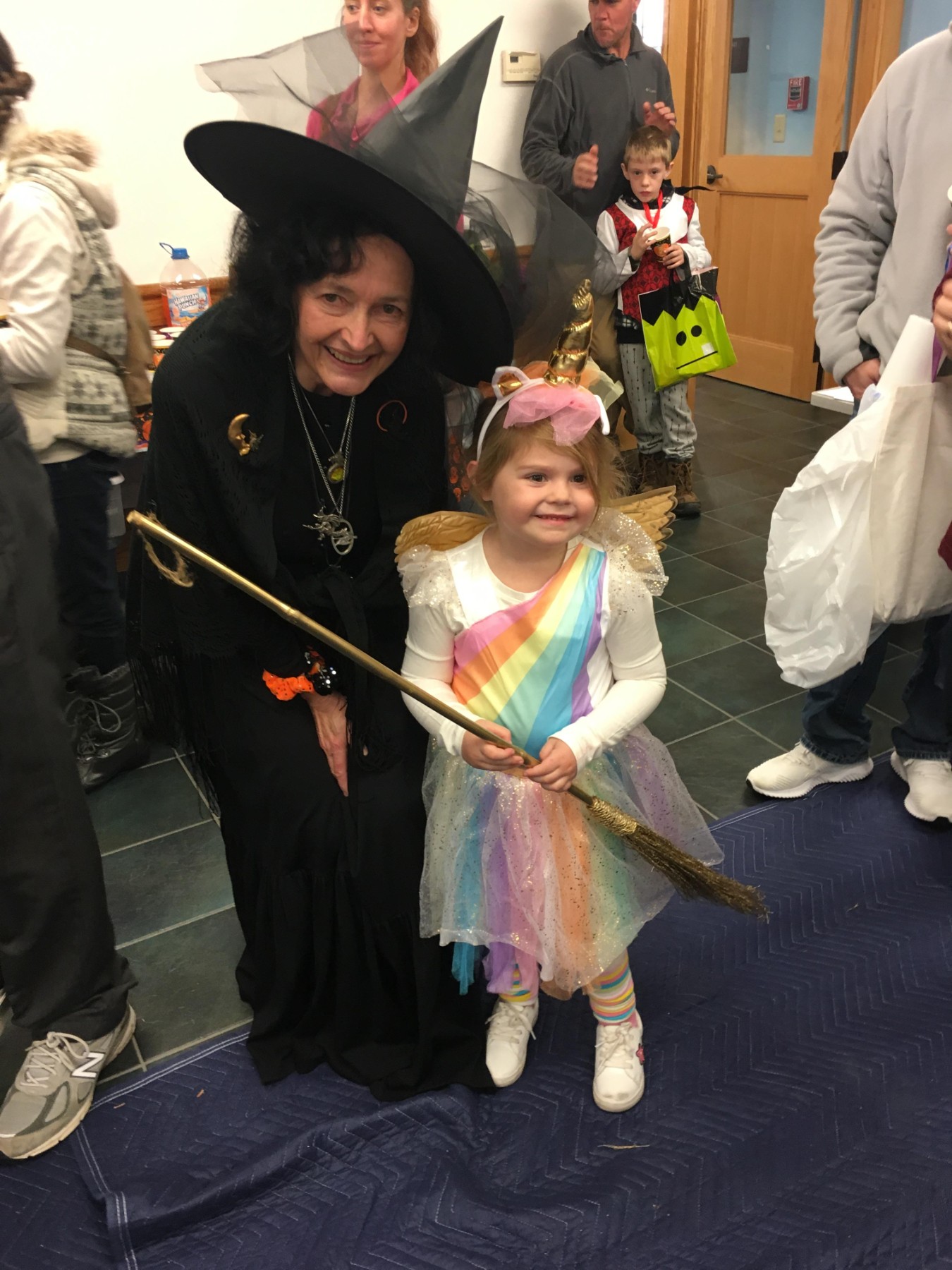 Volunteer (and head witch) Glenda Fischer celebrates Halloween with the young winner of the Aviation Museum’s annual “Golden Broomstick” costume award.