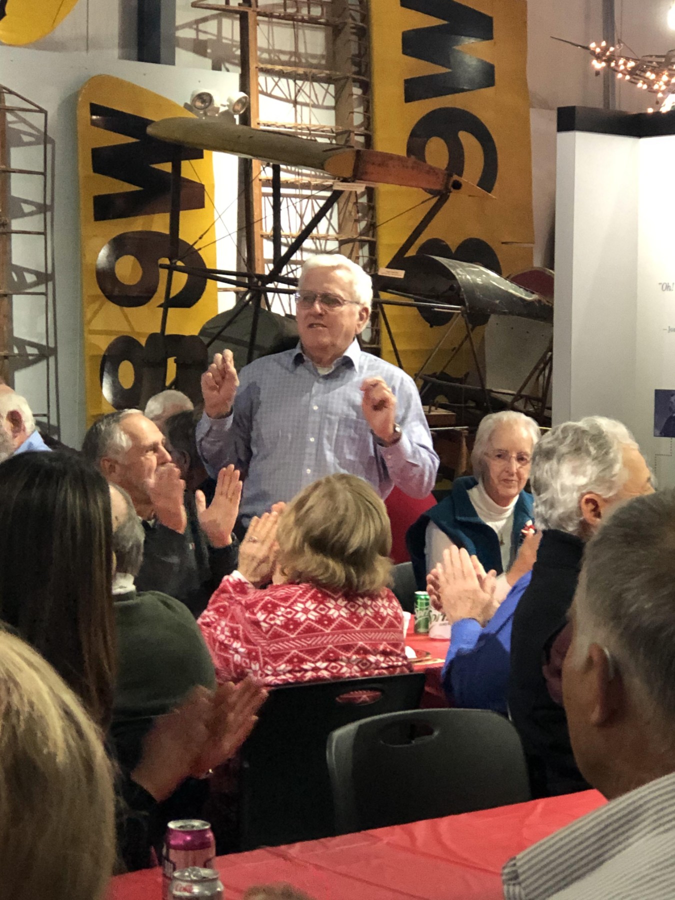 Longtime volunteer Paul Scarlett speaks at the Aviation Museum’s annual Volunteer Appreciation Luncheon.