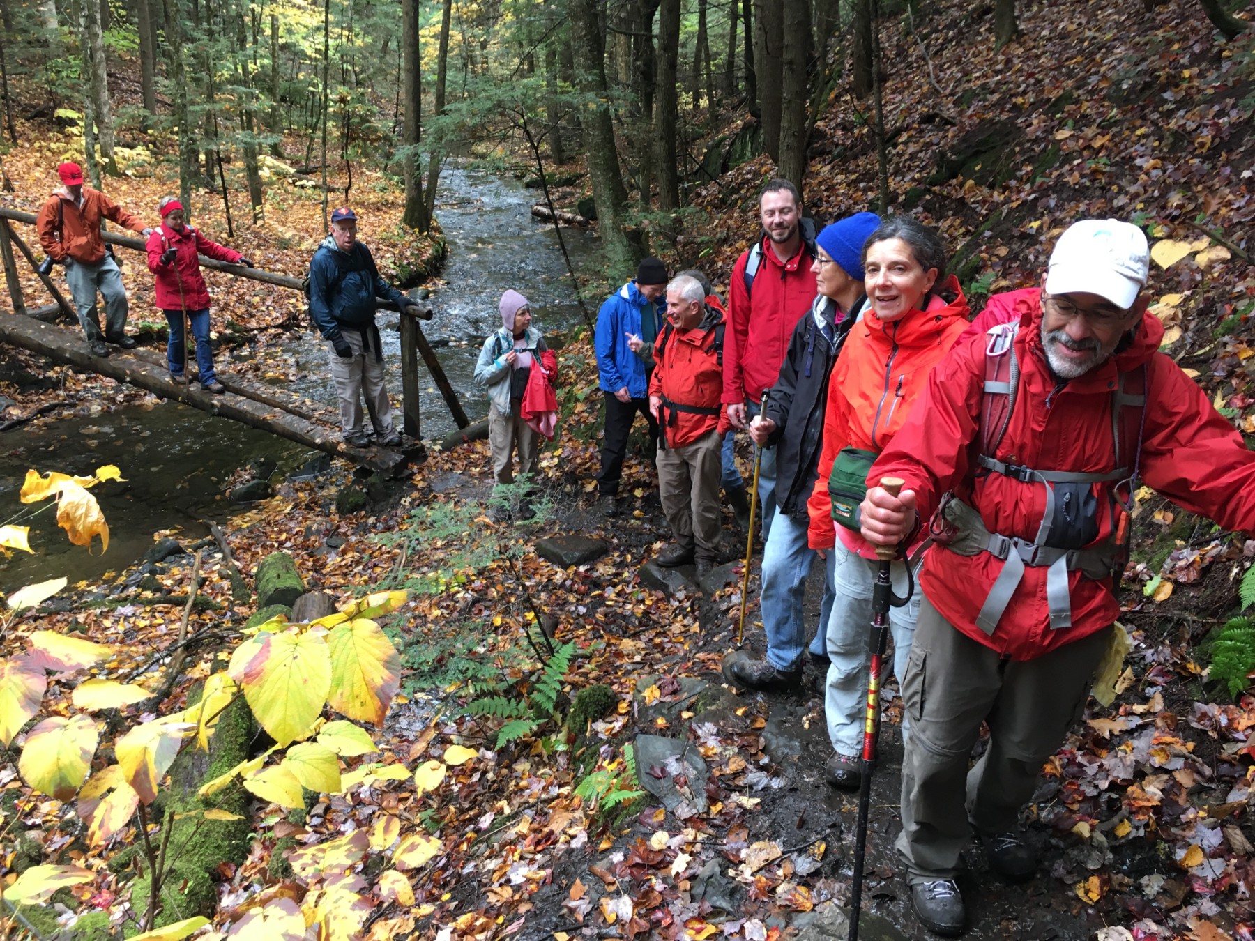 In an event organized by the Aviation Museum, volunteers lead a hike to view a remote airplane crash site on Moose Mountain in Hanover, N.H.