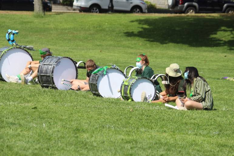 Doyle said of the 80 kids who signed up for band this school year, about a fifth of them have chosen remote learning, which considerably reduces the ranks. But what they lack in numbers they made up for with enthusiasm โ this was the first time being together in the name of a school function since March.