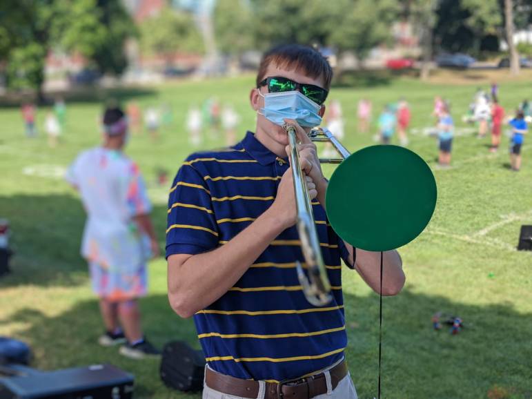 “I went to St. Casimir’s as a kid. We had a 13-person band and a graduating class of 18. Then I went to Memorial where the band was more like 120 members. But being part of the band community allowed me to transition to a new environment well. I also know how important the band camp experience is for freshmen. We’ve managed to make a really good system here, despite the restrictions, and some of the ideas we’ve come up with will probably become part of what we do, even when things are back to normal,” Vigneau says.