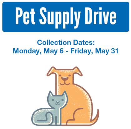 Please visit your local branch and make a contribution of unopened pet food, litter, cleaning supplies, new toys and bedding. No cash donations are being accepted. All donations benefit local, non-profit animal shelters or humane societies. Want to know which shelter will receive your donation? Just ask a branch employee!