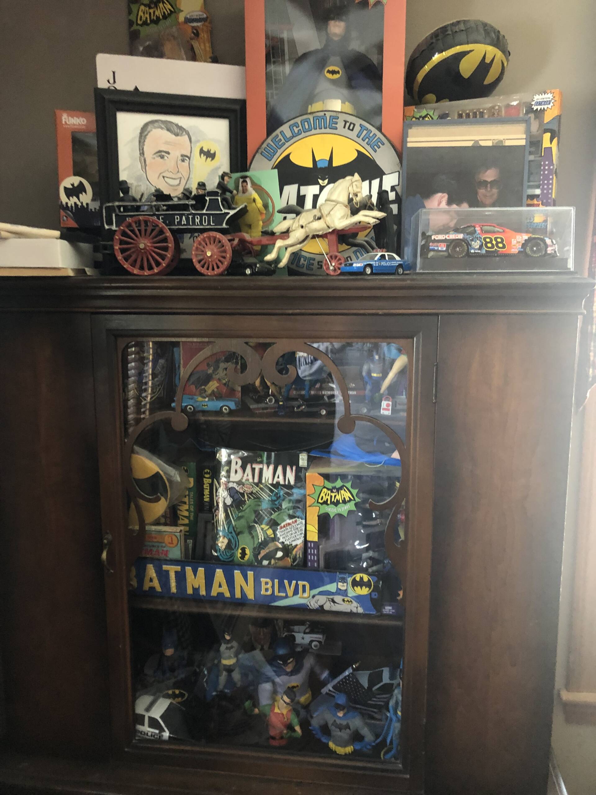 A display cabinet featuring Bob Freitas’ collection of Batman memorabilia. Photo taken by Dawn Wells (Mary Ann from Gilligan’s Island)