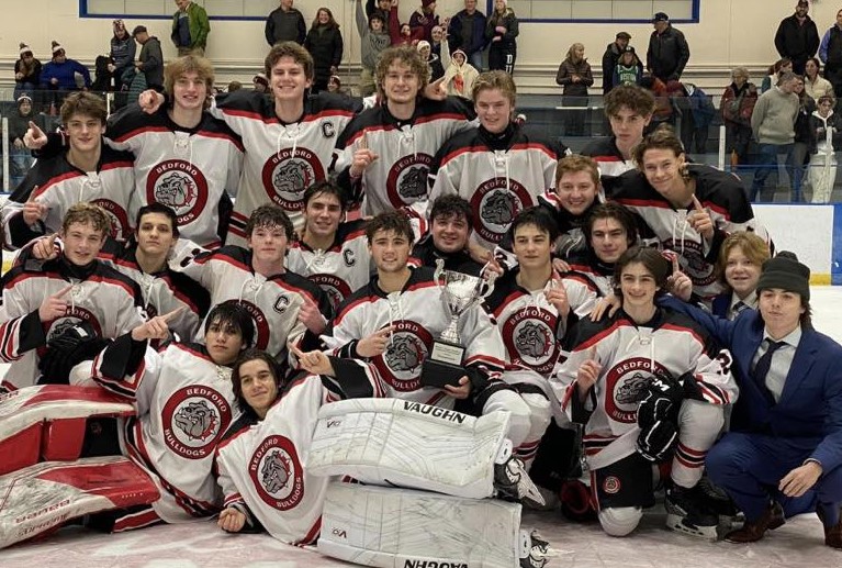 The title game was a hard-hitting affair that featured a scoreless first period. Bedford broke on top at 9:09 of the second, thanks to a power-play goal from Ryan O’Connor. The Bulldogs pressed the attack and doubled their lead just 21 seconds later when Brian Riccio scored off a brilliant centering pass from Parker O’Toole.
