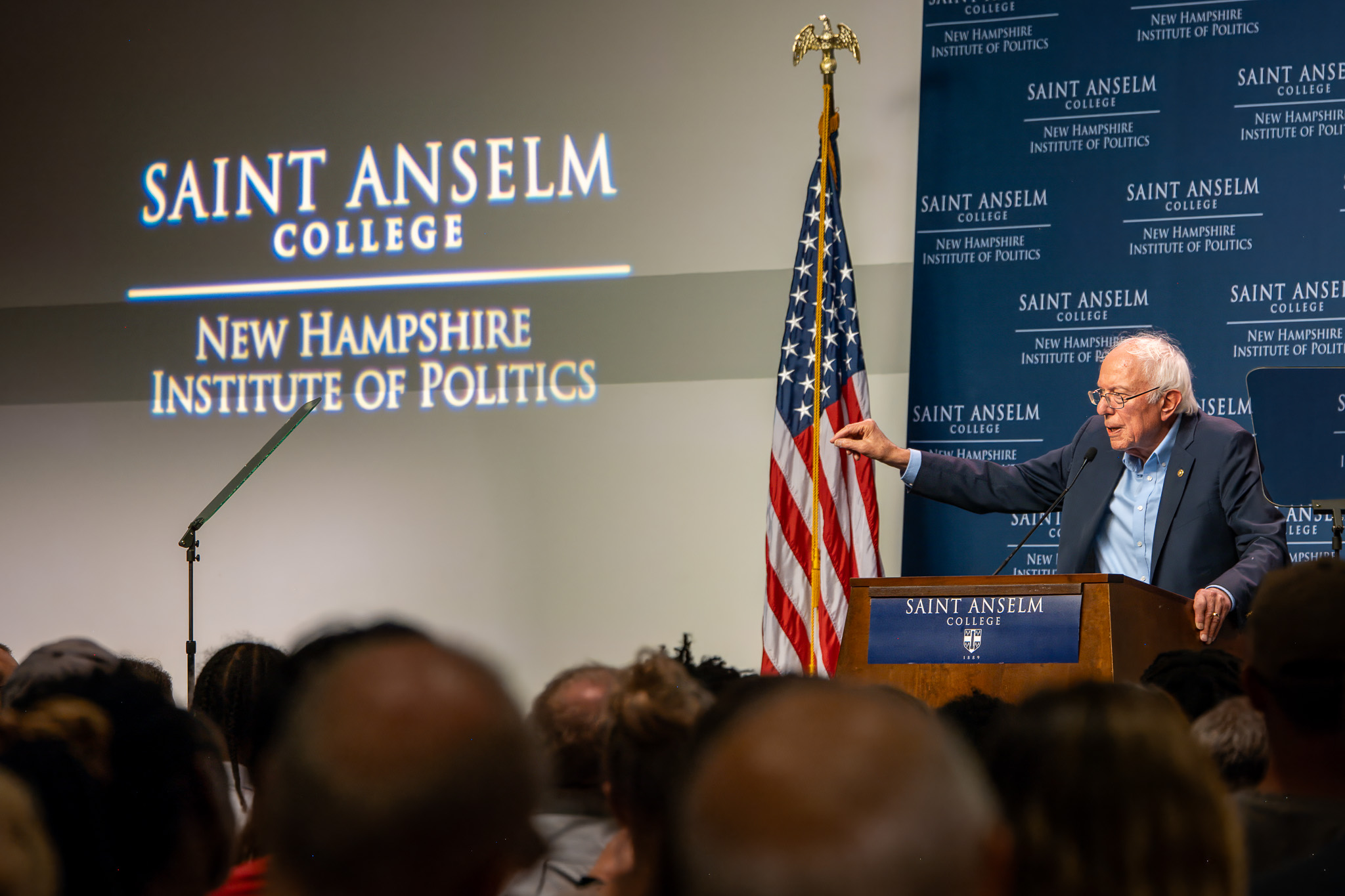 GOFFSTOWN, NH – U.S. Senator Bernie Sanders spoke to a capacity crowd at Saint Anselm College’s New Hampshire Institute of Politics on Saturday. The longtime progressive from neighboring Vermont returned to New Hampshire to share his support for President Biden’s second term, and lay out a roadmap to economic justice for working-class Americans.